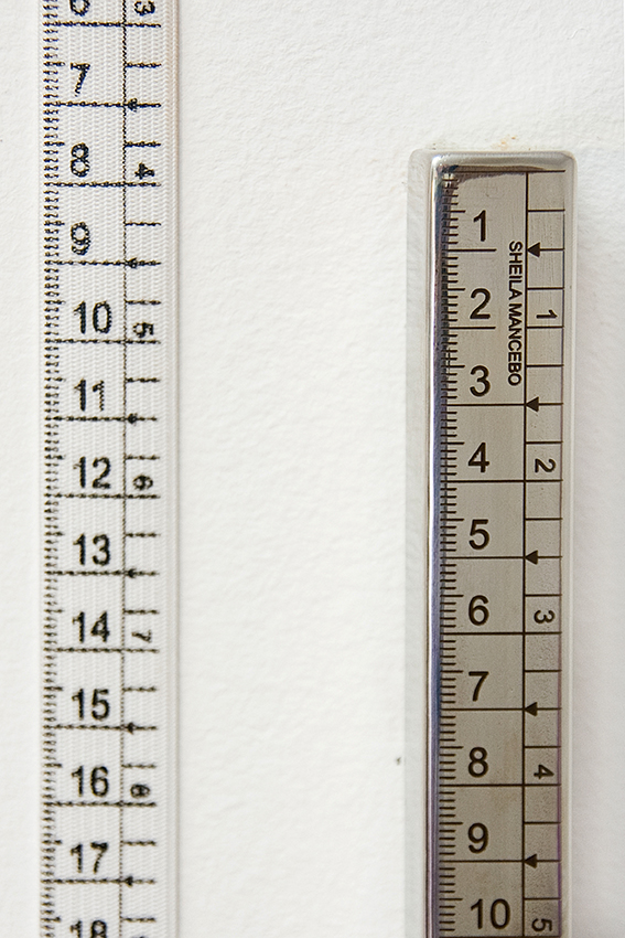 Detalhe  da fita métrica elástica e em gravação no tubo de inox